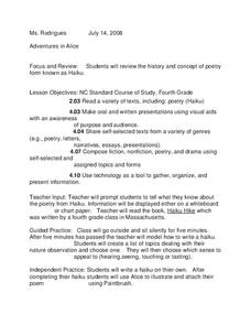 Students create a haiku and illustrate it on the computer. In this haiku lesson plan, students review the history of the haiku while they are outside and then write their own. Students then use a computer program to illustrate their poem.