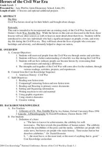 Students complete a unit of lessons about the heroes of the Civil War Era. In this Civil War lesson, students complete a 13 lesson unit about the Civil War and its heroes.