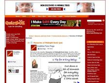 In this Memories of Midnight quiz worksheet, students take a seven question online quiz about the book. Page has multiple ads and links to answers, additional resources and Facebook.