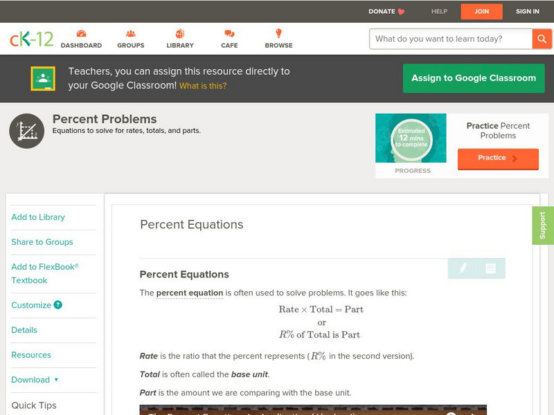 Ck 12: Arithmetic: Percent Equations Grades 9 10