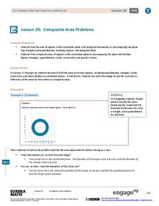 The 21st segment in a 28-part series provides learners with area problems involving composite figures. To find the solution, pupils must decide whether to add or subtract areas. The composite figures are composed of quadrilaterals,...