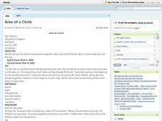 Eighth graders find the circumference and diameter of several lids, show the relationship of the two measurements and derive the formula for finding the area of a circle. For this area of a circle lesson plan, 8th graders find...