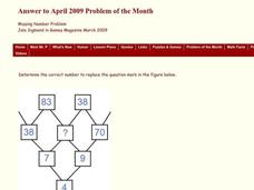 In this number pattern puzzle, students find the missing number by first figuring out the pattern in the diagram.