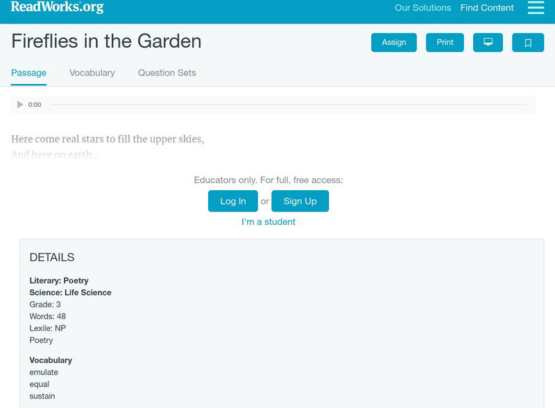 Read Works: "Fireflies in the Garden"
