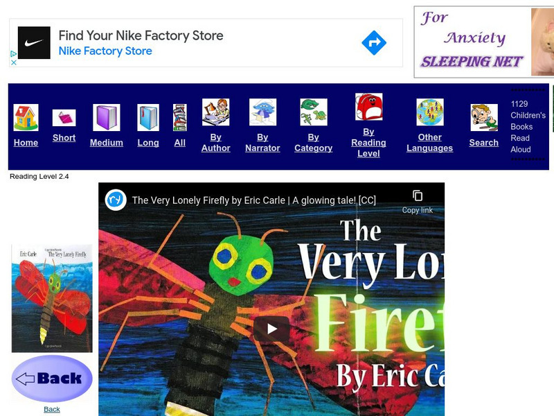 A video of the book "The Very Lonely Firefly", written by Eric Carle. Just Books Read Aloud is a site that includes children's books read aloud by normal (but enthusiastic) readers.