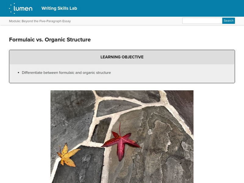 Lumen: Writing Skills: Formulaic vs. Organic Structure