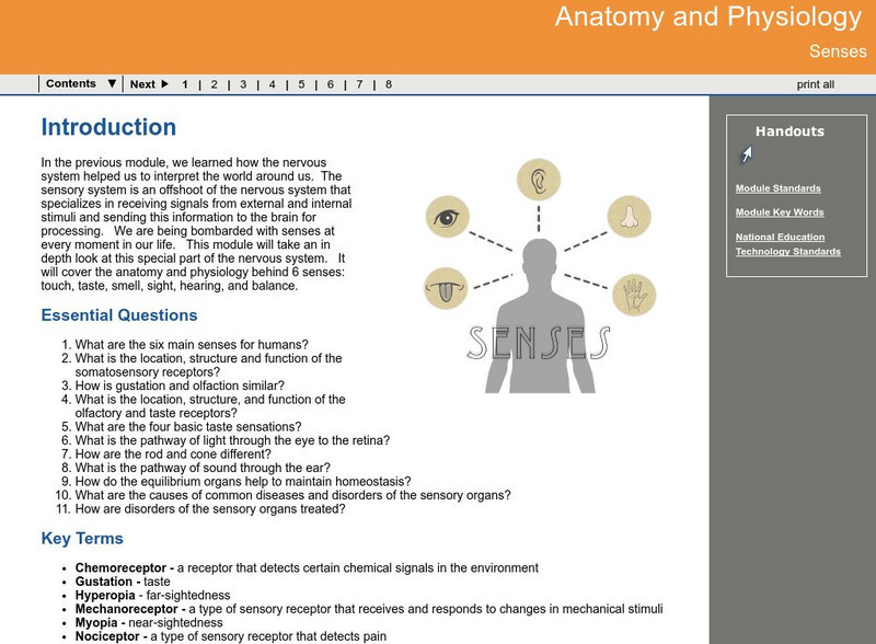 Through informational text with printable notes, animations, video clips, and practice problems students discover the function of the sensory structures in the human body.