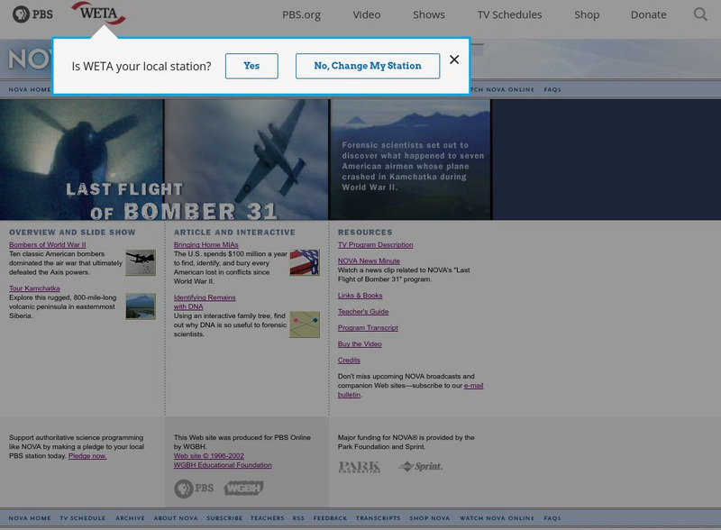 Website that chronicles the story of the search for remains of Bomber 31 that went down in Kamchatka during World War II. There is also a slide show and descriptions of several World War II bombers.