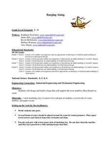 Students create a barge. In this technological design lesson, students use modeling clay to create a barge to hold marbles. Students make their barge then test it to see how many marbles it will hold. Students discuss why their design...