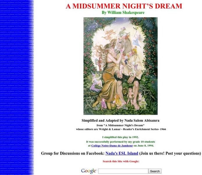 A simplified version of "A Midsummer Night's Dream" developed for English language learners by an ESL teacher.