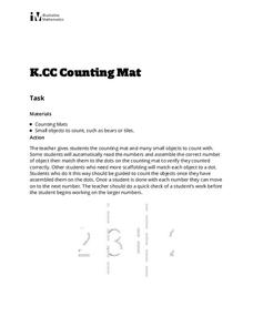 Using the provided counting mats (1-6 and 7-12) and small objects to count with, guide your young learners to match the correct number of objects to the written numeral and dots. Class members will either read the numeral and count out...