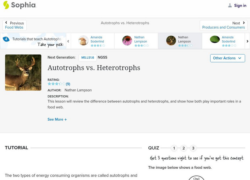 Sophia: Autotrophs vs. Heterotrophs: Lesson 3