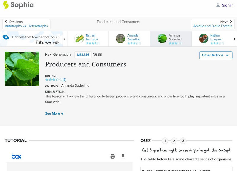 Sophia: Producers and Consumers: Lesson 2