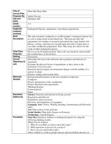 Learners complete a research project In this endangered species lesson, students use the "Think, Puzzle, Explore" method to learn about endangered species. Learners research and write a report on the red-cockaded woodpecker.