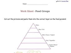 Students examine the food pyramid. In this healthy eating lesson, students discover the parts of the food pyramid and how much to eat from each section. They cut out pictures to glue on their food pyramid.