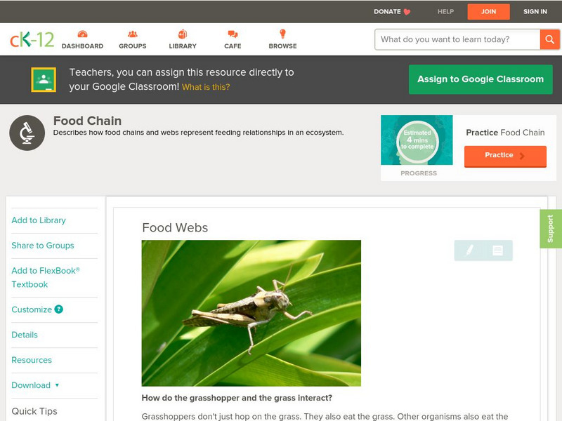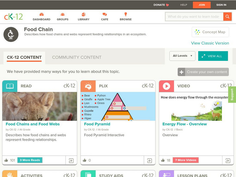 [Free Registration/Login may be required to access all resource tools.] Videos, texts, activities, and assessments about food chains and food webs in an ecosystem.
