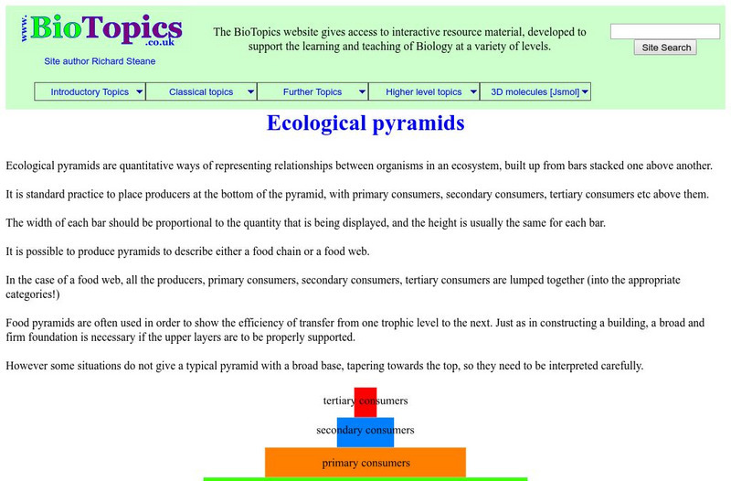 A colorful tutorial about ecological pyramids. Read the information, and then check your understanding with some questions and answers about the topic.
