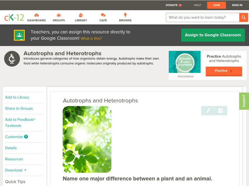 Ck 12: Biology: Autotrophs and Heterotrophs
