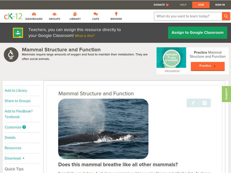 [Free Registration/Login may be required to access all resource tools.] Describes the function of various structures in mammals.
