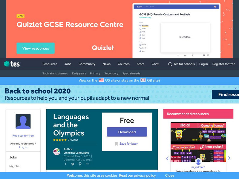 [Free Registration/Login Required] During this three week Olympics unit, primary students will pair with secondary students. Students will learn basic French and Spanish vocabulary through music and physical education activities.