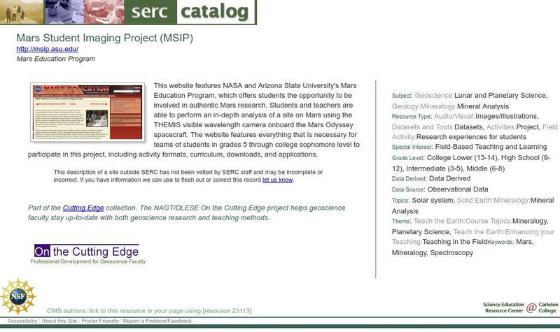 Links to the Mars Student Imaging Project (MSIP), an award-winning authentic inquiry-based learning and student-centered education project which offers students the opportunity to be involved in authentic Mars research. The website...
