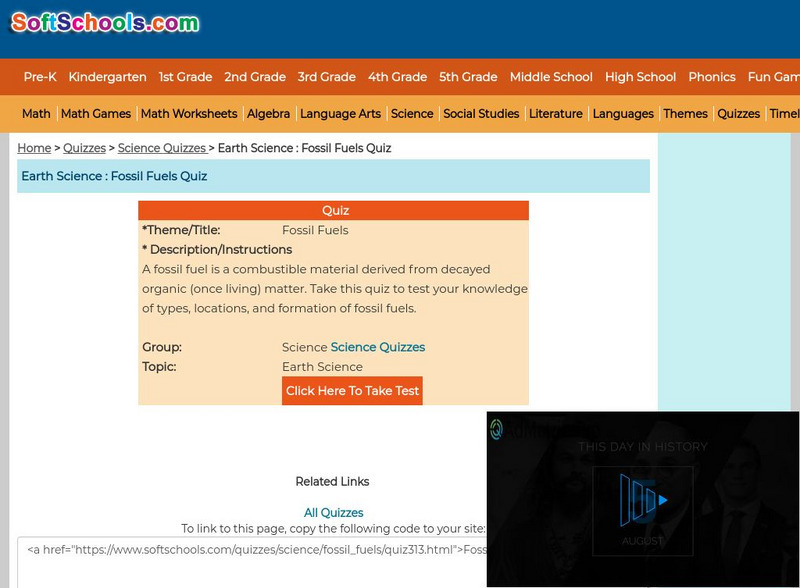 Soft Schools: Earth Science Quizzes: Fossil Fuels