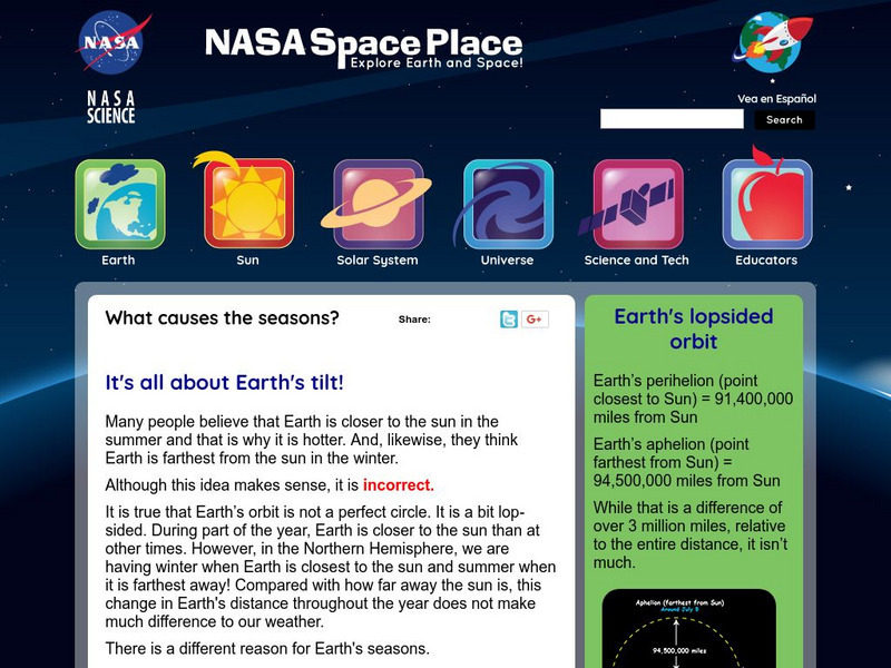 This webpage uses diagrams and video to explain the causes of the seasons.
