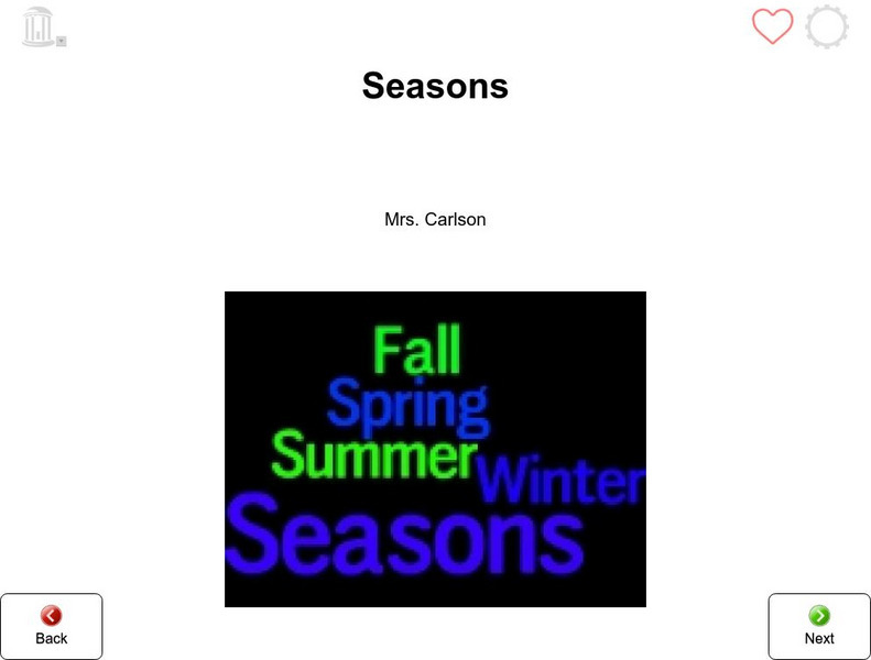 For this lesson, students learn how to identify the different seasons by their characteristics.