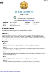 Following an engaging video, mathematicians solve a word problem about baking cupcakes using fractions. Scholars practice different problem-solving strategies, then find different ingredient amounts for their recipes. Pupils solve a...