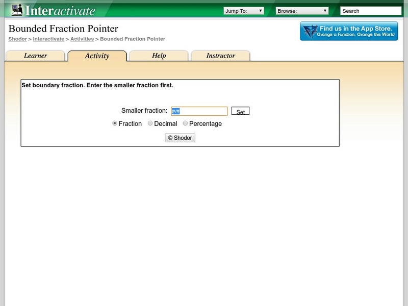 Given the name of a fraction (for example, "Three Sevenths" or "Four Eighths"), find the fraction's location on a number line. First, you'll need to slice up the number line in order to create the correct denominator. Then, you'll choose...