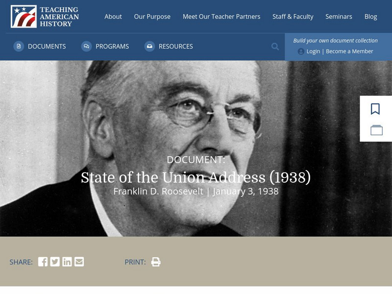 A transcribed version of the State of the Union delivered by Franklin D. Roosevelt on January 3, 1938.