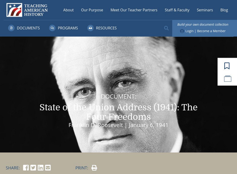 A transcribed portion of President Franklin D. Roosevelt's address to Congress on January 6, 1941.