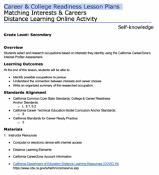 Using the California CareerZone Interest Profiler results, scholars choose an occupation to research then write a summary about what they discovered.