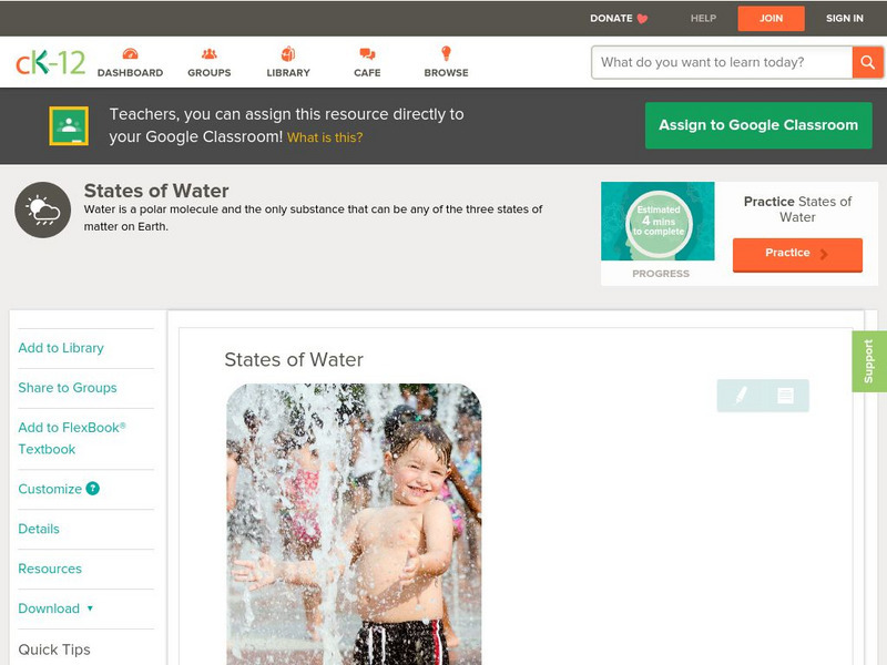 [Free Registration/Login may be required to access all resource tools.] Describes the three states of matter of water.