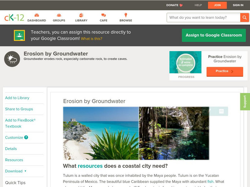 [Free Registration/Login may be required to access all resource tools.] Describes erosion of rock caused by groundwater.