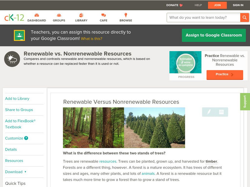 [Free Registration/Login may be required to access all resource tools.] Distinguishes between renewable and nonrenewable resources.