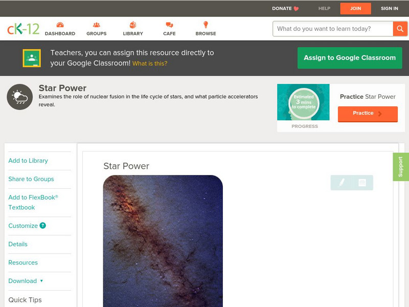 [Free Registration/Login may be required to access all resource tools.] Examines nuclear fusion in stars and simulated in particle accelerators.