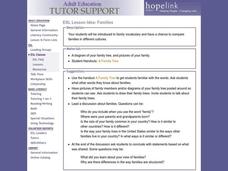 Students practice using family vocabulary. They compare their own culture to others in the world. They also create their own family tree and share it with the class.