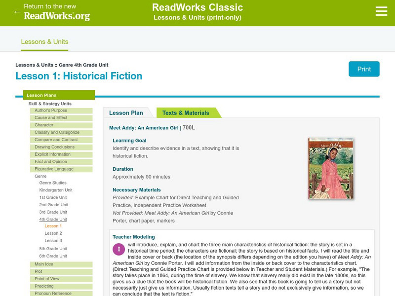 Read Works: Genre 4th Grade Unit: Historical Fiction