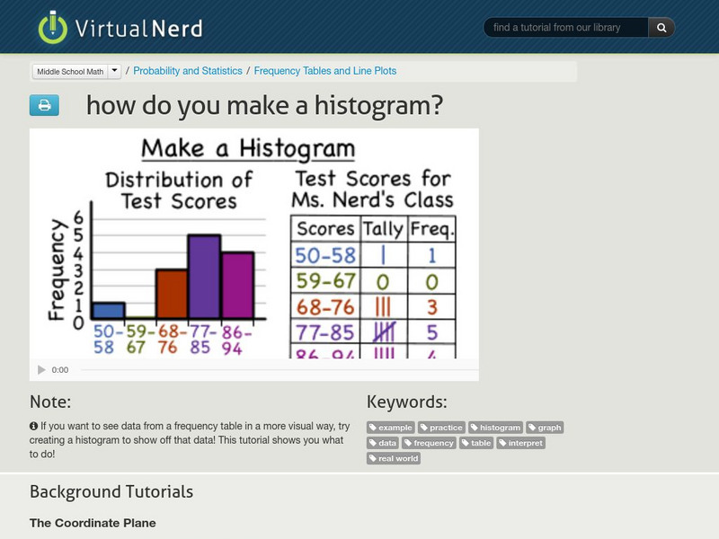 Make a histogram to show off data in a visual way. This video will walk you through the process and provide examples. [5:34]