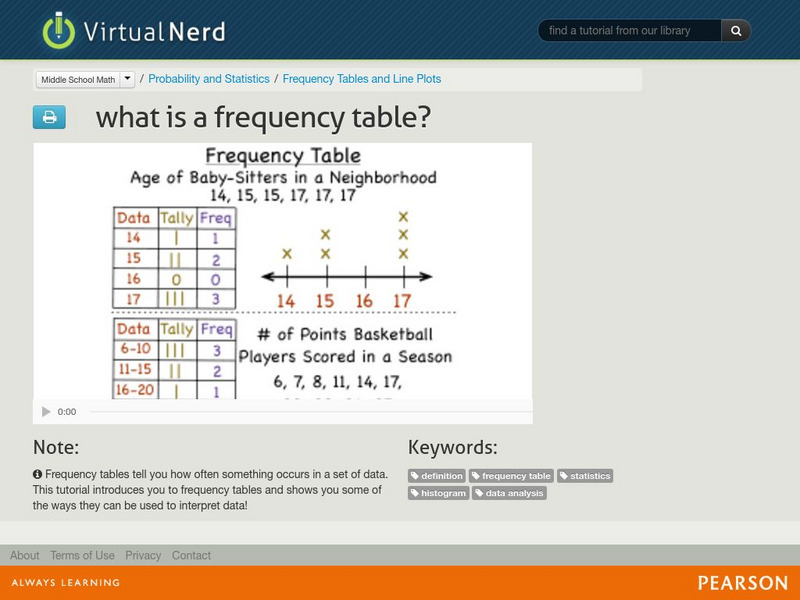 Frequency tables tells you how often something occurs in a set of data. Watch this video for examples of frequency tables. [6:44]