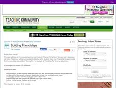 Students identify the characteristics of a good friend and assess themselves as a friend. They practice opening statements to initiate conversation and discuss ways to maintain friendships.