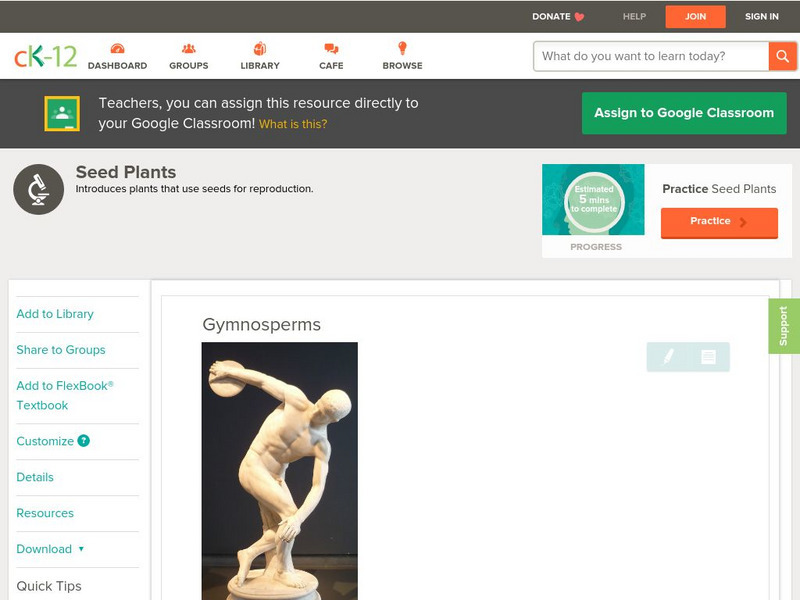 [Free Registration/Login may be required to access all resource tools.] Gymnosperms have seeds, but they do not produce fruit. Instead, the seeds of gymnosperms are usually found in cones. Learn more about gymnosperms in this learning...