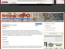 Students analyze perspectives of war. In this war and religion lesson, students collaborate to research anti-war and pacifist positions on war as well as "just war" theory. Students compose essays regarding perspectives of war.