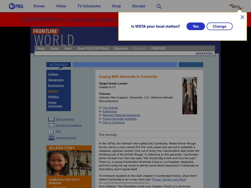 Pbs Teachers: Coping With Genocide in Cambodia (History Teaching Activity)