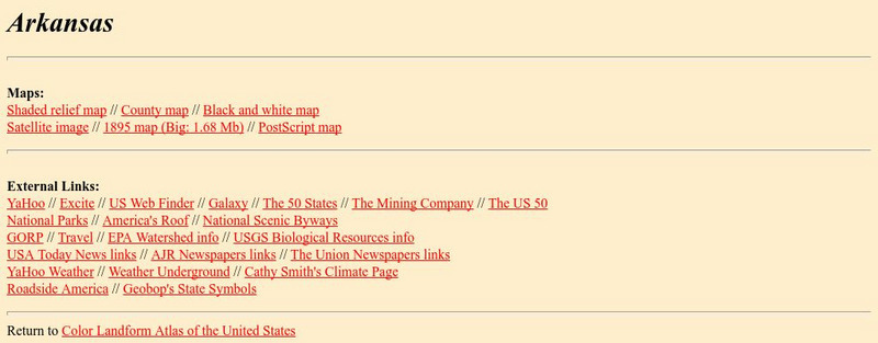 Learn more about the Arkansas' geography through the maps at this website from the Johns Hopkins University Applied Physics Laboratory. These maps give in depth information on the landforms found in Arkansas.