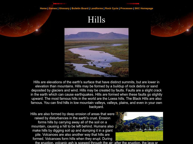 Excellent site from the Southern Kings Consolidated School explaining what a hill is and how hills are formed. Easy to understand and contains great pictures.