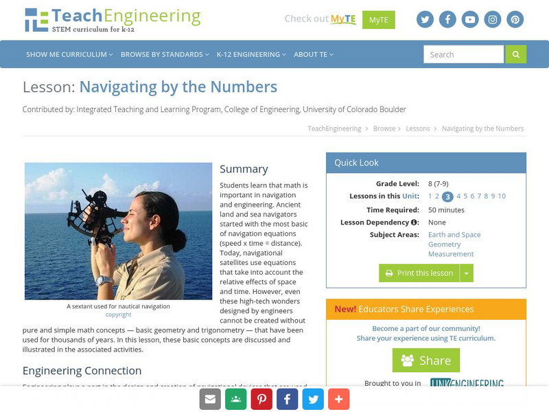 In this lesson, young scholars will learn that math is important in navigation and engineering. Ancient land and sea navigators started with the most basic of navigation equations (Speed x Time = Distance). Today, navigational satellites...