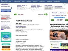 Seventh graders create a graph of their Christmas gifts. They develop categories, compute fractional and decimal parts for each category, identify the number of degrees to represent each fractional part, and create a circle graph to...