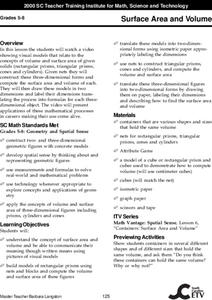 You and your class will like this lesson on using visual models to relate the volume and surface area of solid shapes. Learners construct three-dimensional forms using nets. They calculate the surface area and volume for each and then...